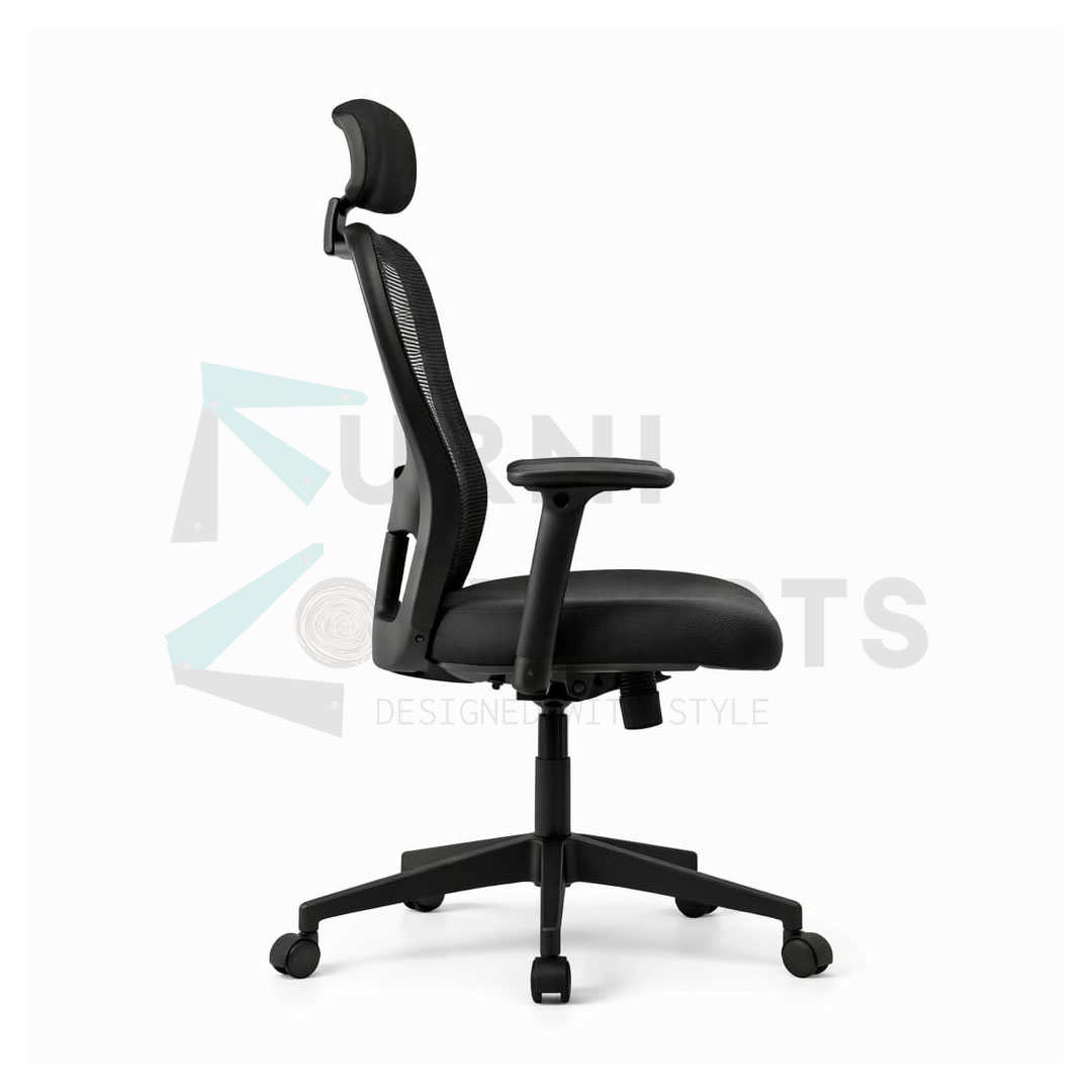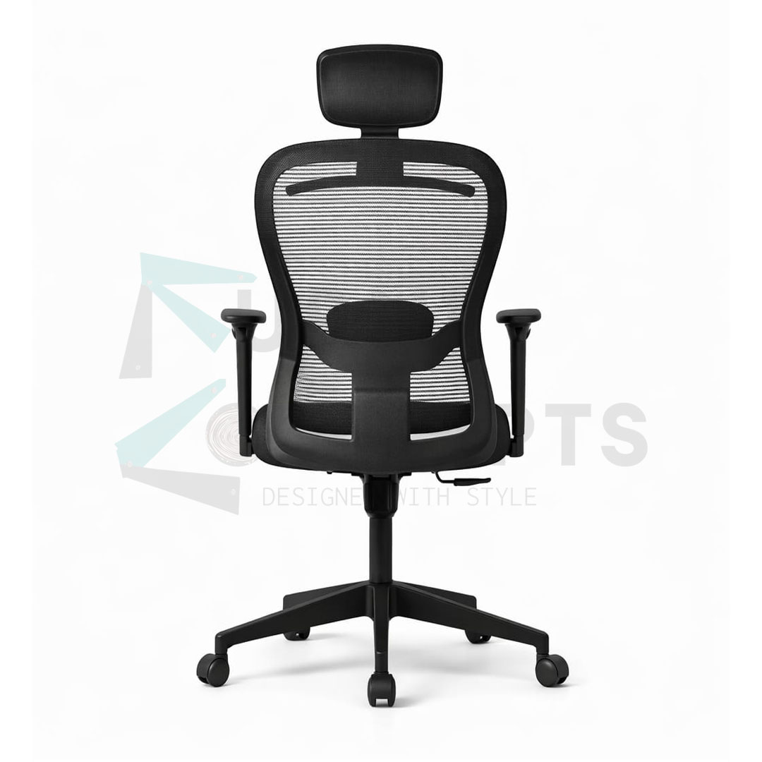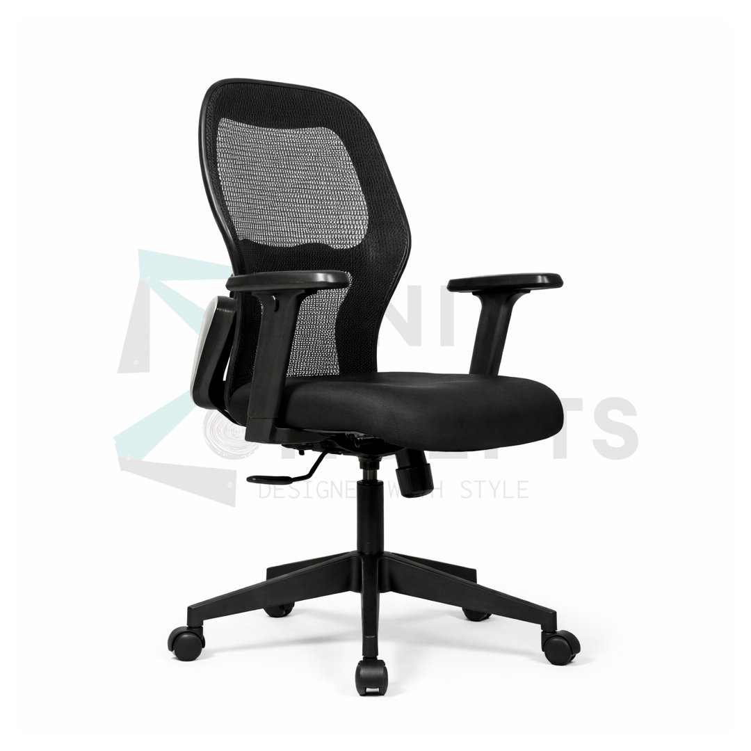 Backrest: Ergonomically designed and upholstered with mesh fabric for breathability