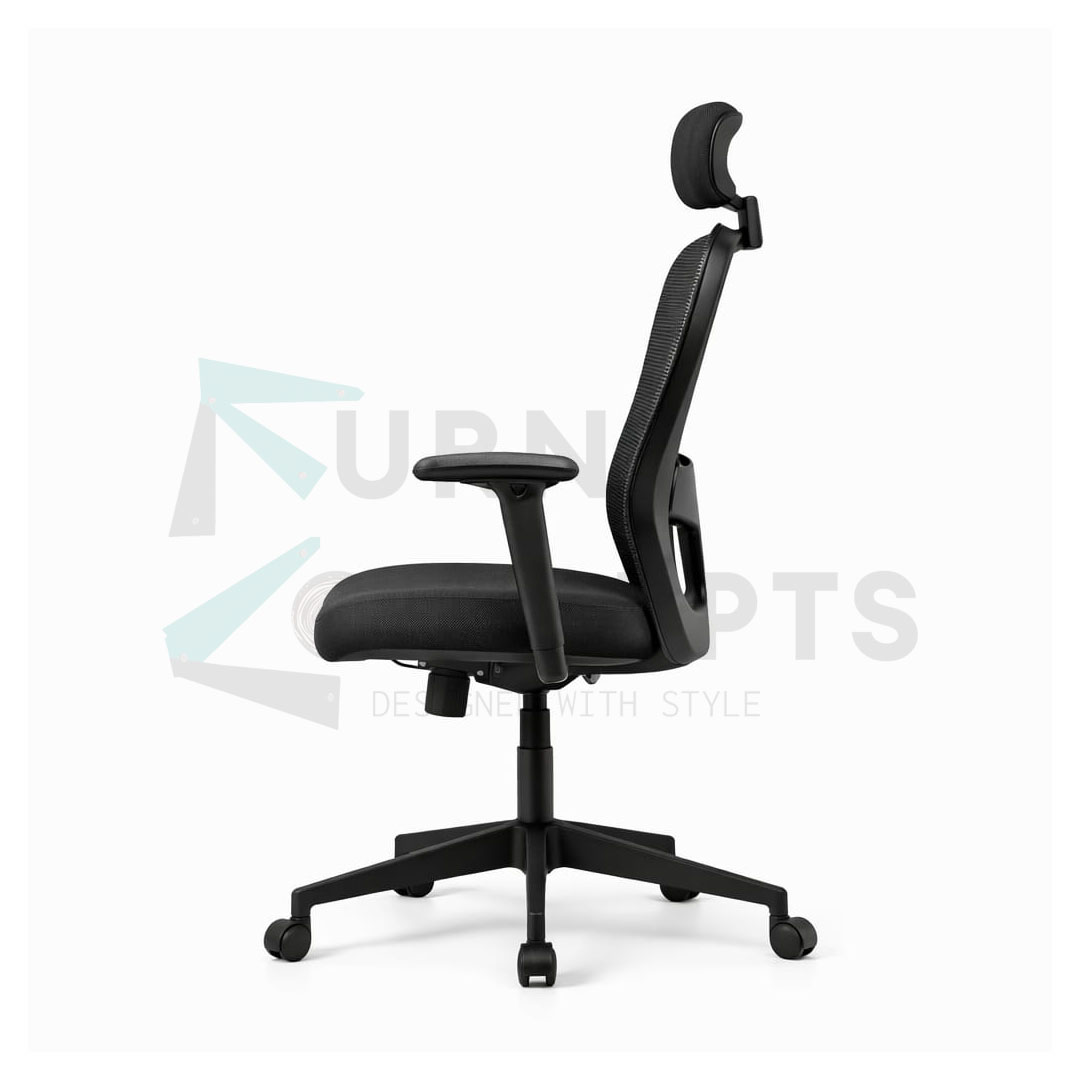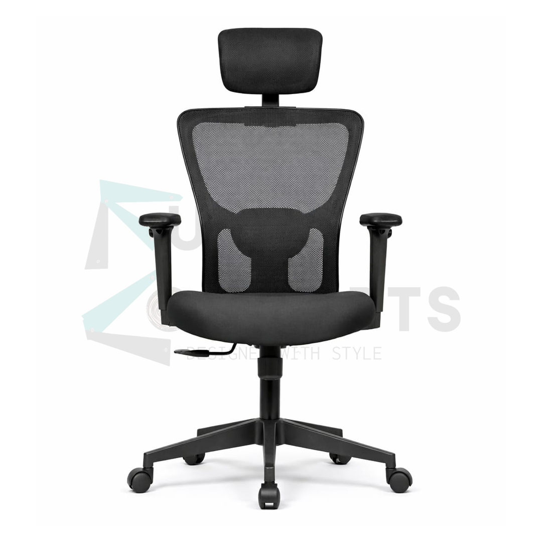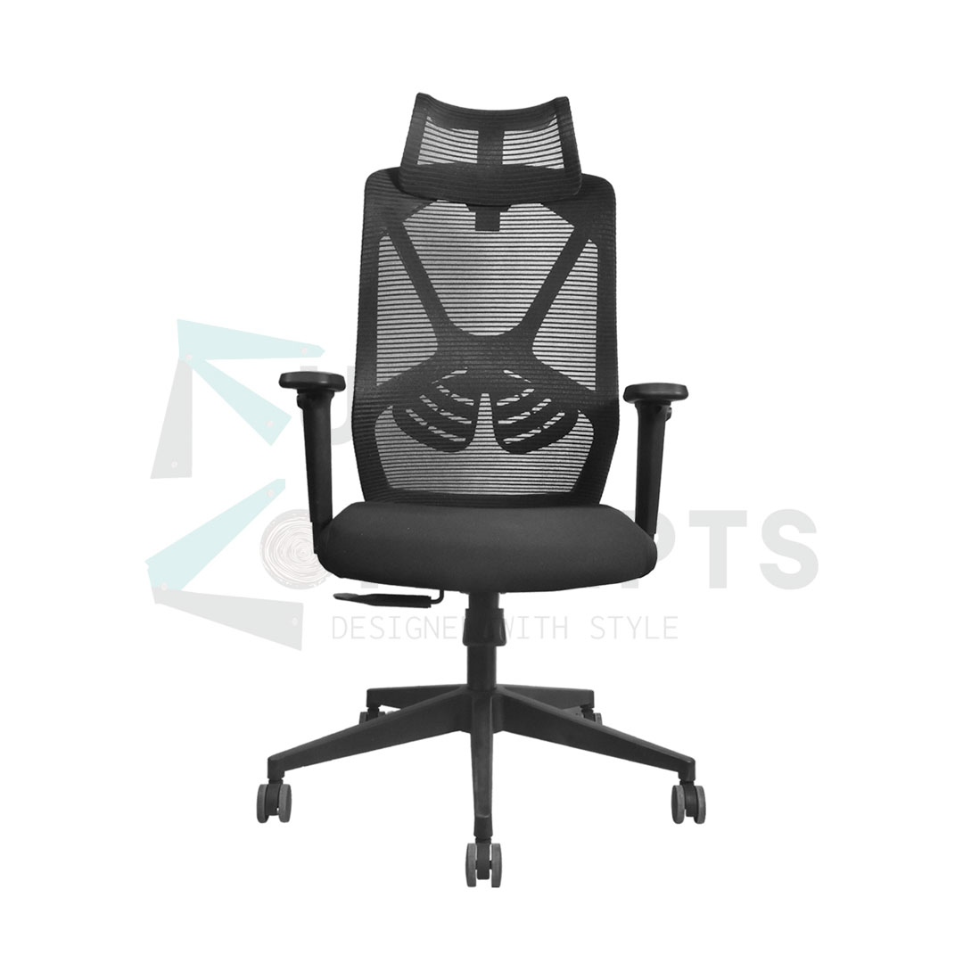 Backrest: Ergonomically designed and upholstered with mesh fabric for breathability