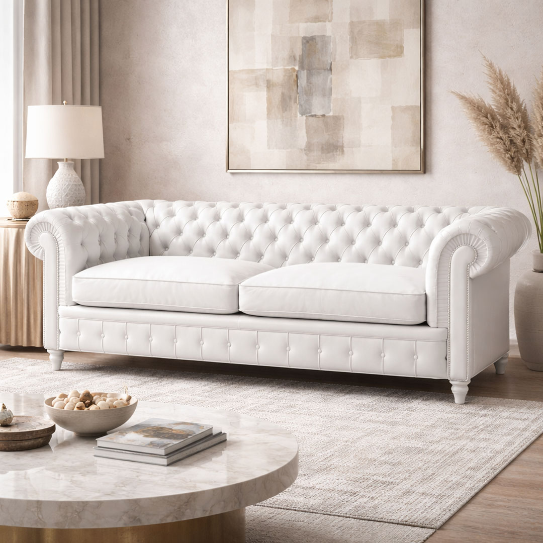 Deep button tufting on backrest and seat for a stylish look